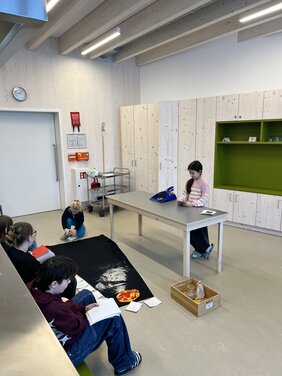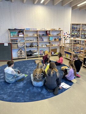 Die Kastanien-Klasse stellte der Jacaranda-Klasse die kosmischen Erzählungen vor, welche von den Pädagogen altersgerecht angepasst wurden. Obwohl die Inhalte für die Grundstufe leichter zugänglich gestaltet sind, bleibt der inhaltliche Kern aller kosmischen Erzählungen derselbe.